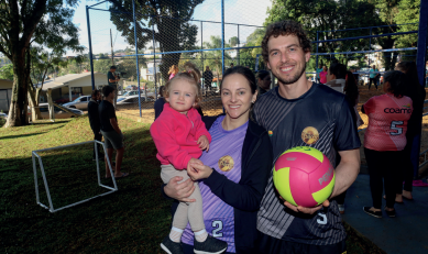 A família Pelizza, de Xanxerê (SC), viveu momentos especiais na Copa Coamo. Pedro Ernesto, ao lado da esposa Vanessa e da filha Lívia, de um ano e quatro meses, participou da competição em Abelardo Luz. O casal avançou para a final em Campo Mourão. Ele no futebol suíço e ela no vôlei de areia.
