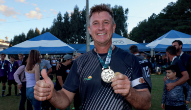 Luis Fernando Bianchini participou da Copa Coamo em Tupãssi e viveu um momento marcante antes da partida, quando foi prestada uma homenagem ao seu pai, Antonio Bianchini, que faleceu em março e foi um grande incentivador do esporte. “Meu pai participou desde a primeira Copa Coamo. Ele sempre corria atrás de tudo, montando o time e fazendo o que precisava. Estou dando sequência a uma história deixada por ele”, comenta.