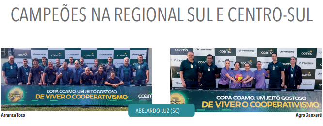 A segunda regional da Copa Coamo de Cooperados foi realizada em 10 de maio nas regiões Sul e Centro-Sul do Paraná e no Oeste de Santa Catarina. O evento contou com a participação de 155 equipes, sendo 83 times de futebol suíço masculino e 72 de vôlei de areia feminino, envolvendo mais de 1.600 atletas.