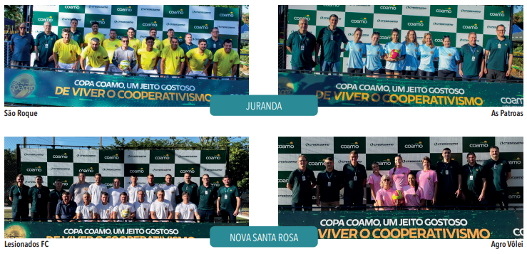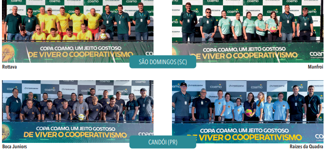 Milhares de cooperados, familiares e membros da comunidade participaram no sábado, 24 de maio, da terceira etapa regional da Copa Coamo, realizada nos campos de Toledo, Tupãssi, São Pedro do Iguaçu, Nova Santa Rosa, no Oeste do Paraná, e Goioerê e Juranda, no Centro-Oeste do Paraná. A etapa definiu seis novos campeões regionais nas modalidades de futebol suíço e vôlei de areia feminino. As equipes vencedoras garantiram vaga na final, marcada para 26 de julho, em Campo Mourão.
