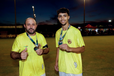 Rosenil Batista Mendes e Gabriel de Souza Mendes, pai e filho, conquistaram juntos o título da Copa Coamo em Goioerê. “É uma satisfação muito grande para um pai jogar do lado de um filho. Eu tinha vontade de jogar com ele e de sermos campeões para representar a nossa unidade na final”, comenta.